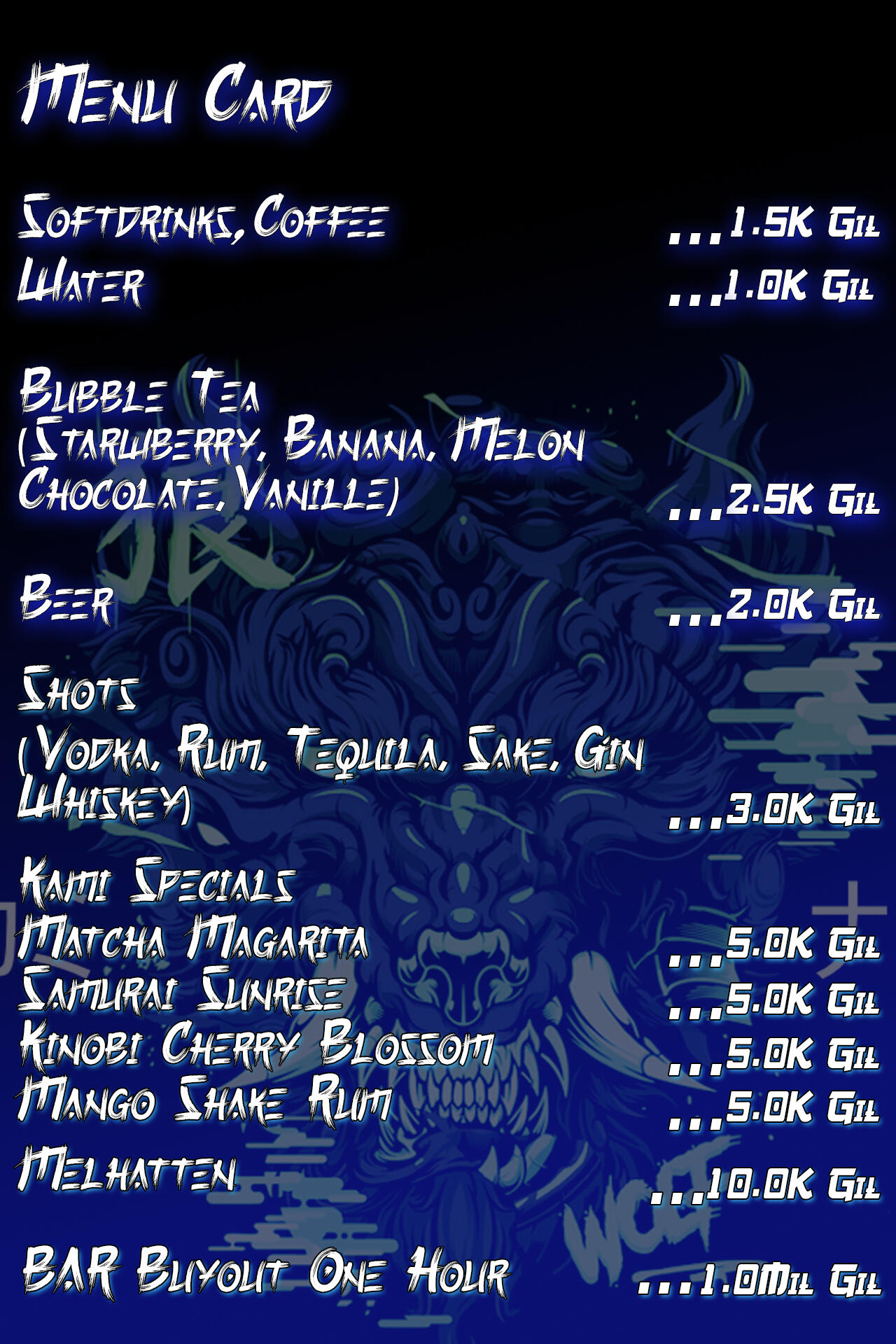Fresh drinks made from exquisite ingredients directly from Kugane gives you refreshment for the evening, whether alcoholic or non-alcoholic, our bartenders have the right thing for every taste! Your favorite drink is not on our menu? No problem, our trained staff leaves nothing to be desired!